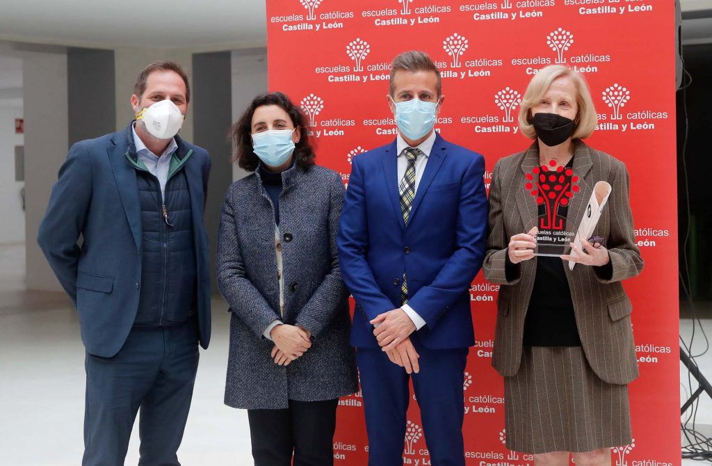 Silvia Moroder, presidenta y fundadora de Fundación ANAR, junto al resto de galardonados en los Premios Escuelas Católicas Castilla y León 2022