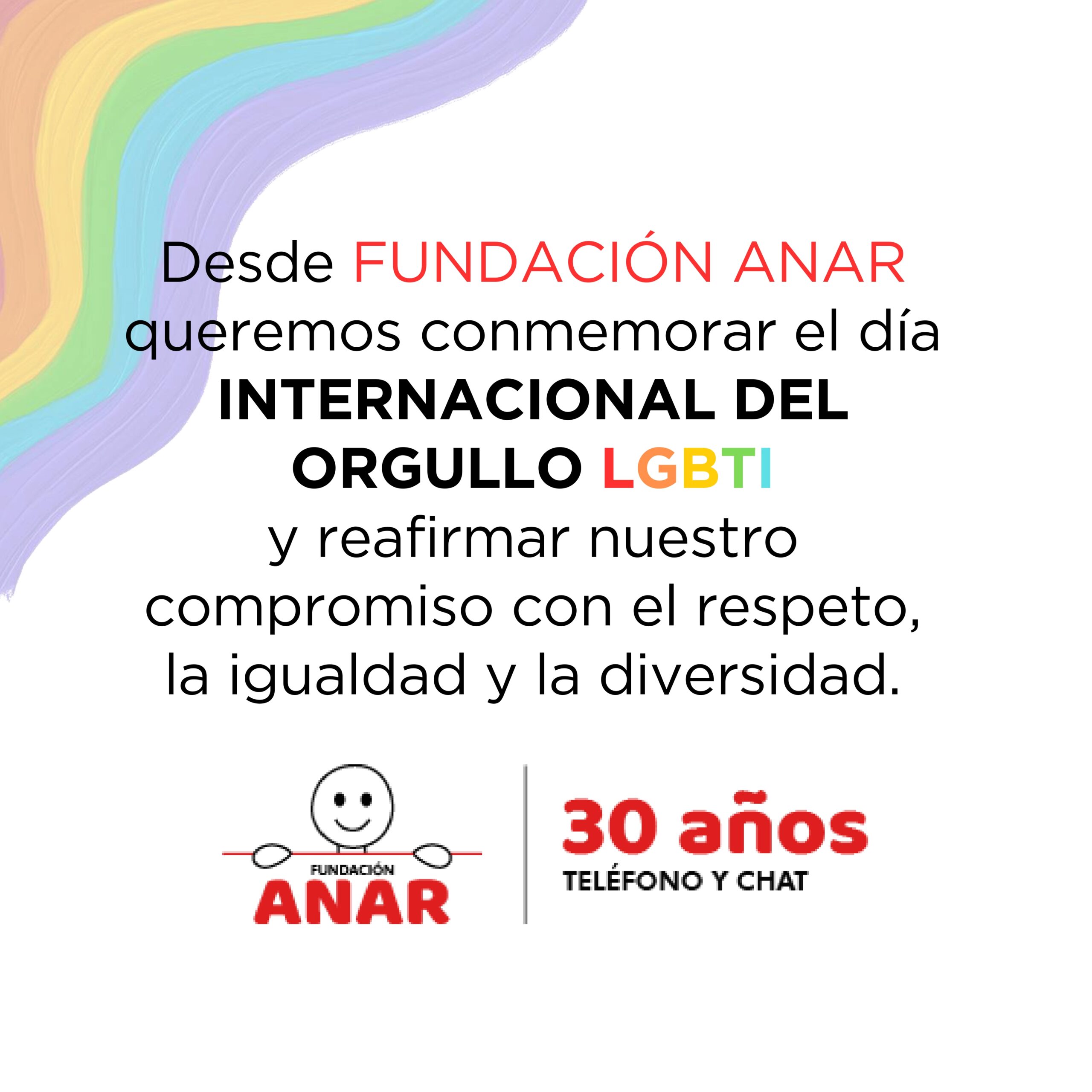 Desde Fundación ANAR queremos conmemorar hoy, 28 de junio de 2024, el día internacional del orgullo LGBTI como muestra de nuestro compromiso con el respeto a la diversidad de identidad y orientación sexual y/o de género.