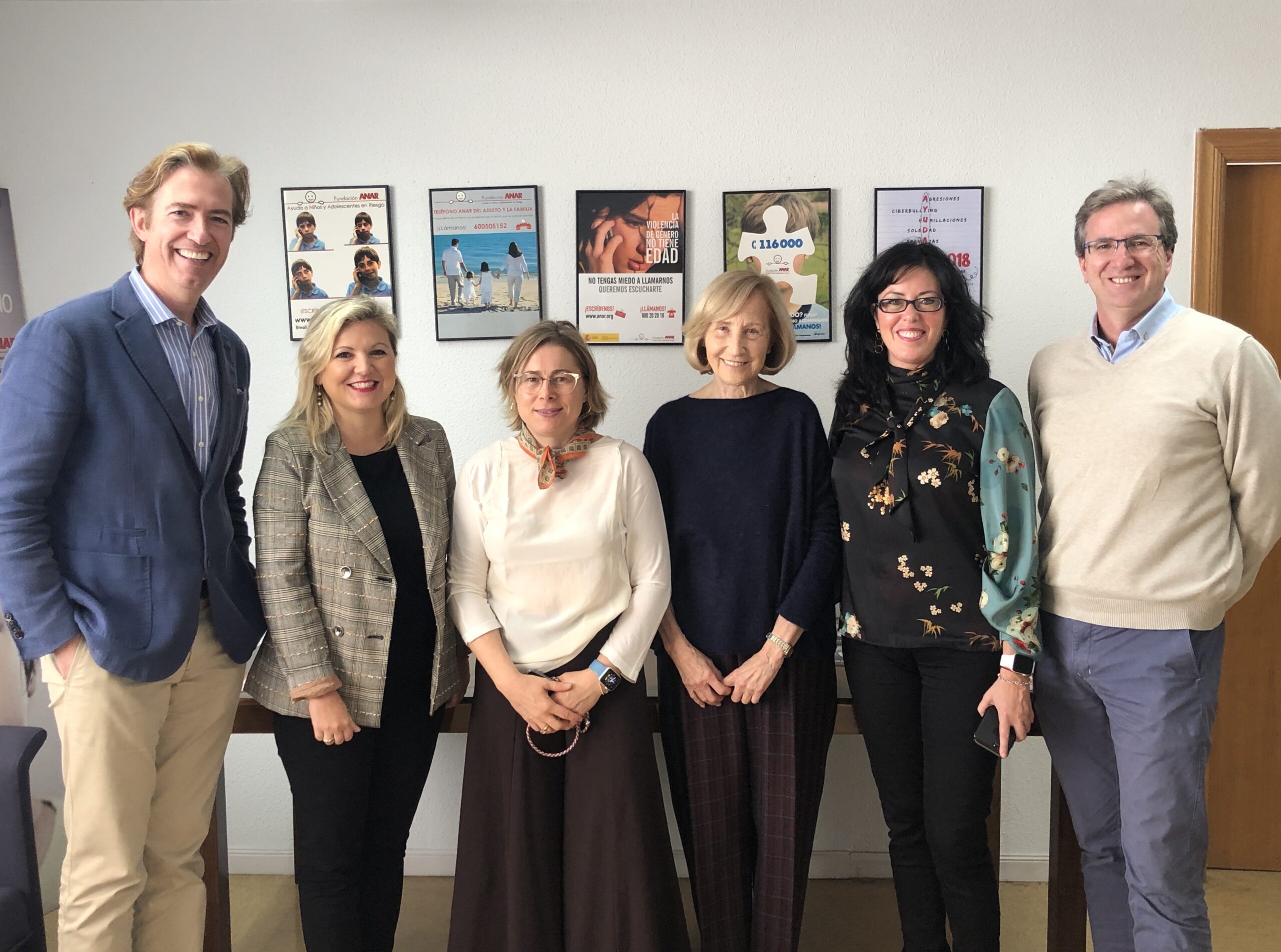 Sastre ha sido recibida por la presidenta de la Fundación, Silvia Moroder, Benjamín Ballesteros, director de Programas, Juan Kindelan, director de Alianzas y Diana Díaz, directora del Teléfono ANAR.