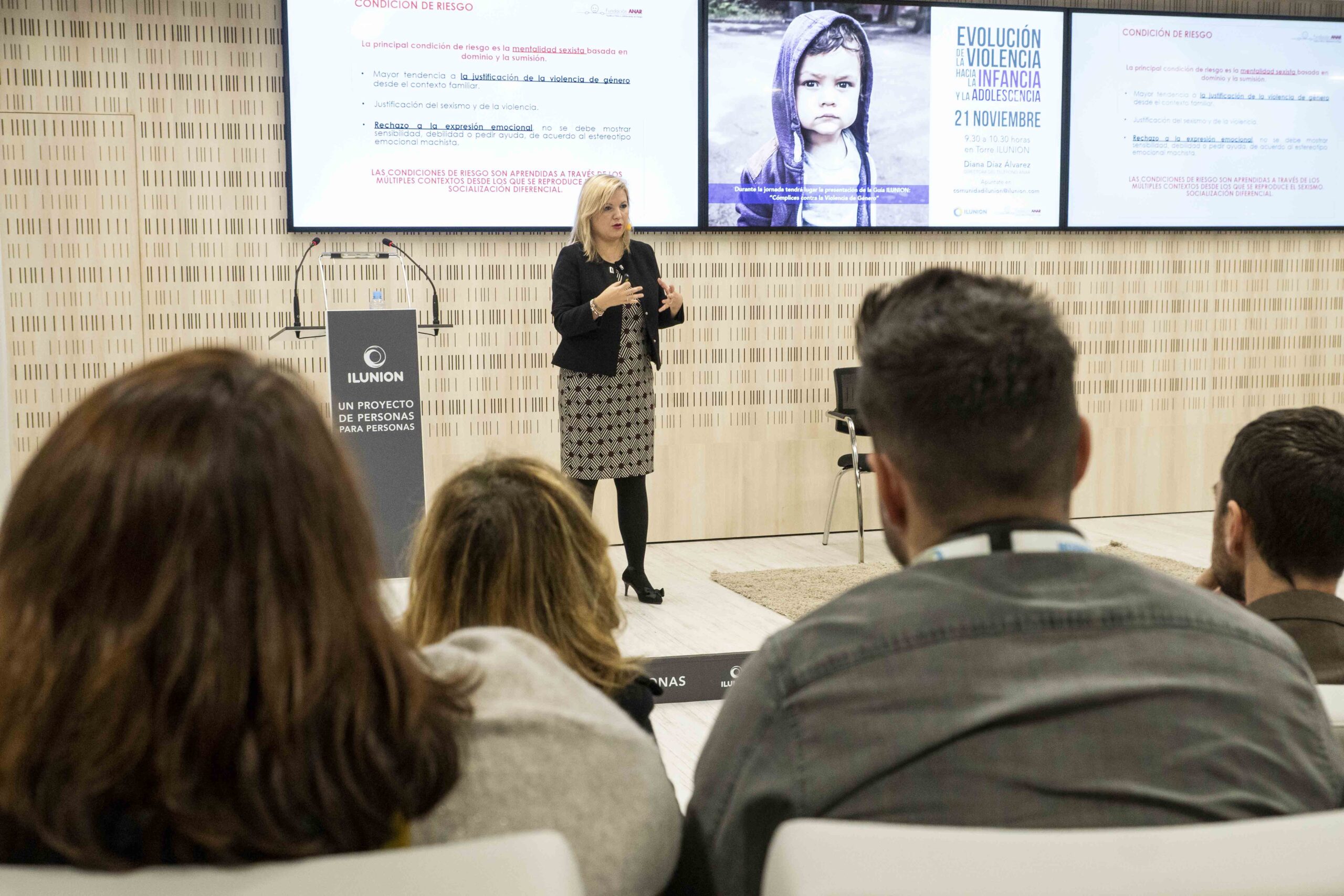 Diana Díaz, la directora del Teléfono ANAR ha participado en la jornada ‘Evolución de la violencia de género hacia la infancia y la adolescencia’, organizada por el Grupo ILUNION, con el objetivo de dar a conocer el Estudio: Evolución de la Violencia a la Infancia y Adolescencia en España según los afectados, que presentó la Fundación ANAR en el Congreso de los Diputados y el Senado.