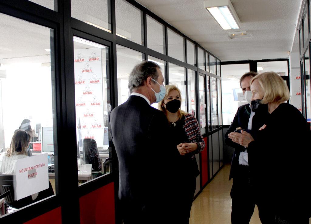 Durante el recorrido por la sede central de Madrid, el señor Baselga se ha acercado al departamento social, al jurídico, ha podido presenciar una clase en el aula de formación y ver cómo los/as psicólogos/as trabajan en la sala del Teléfono/ChatANAR.