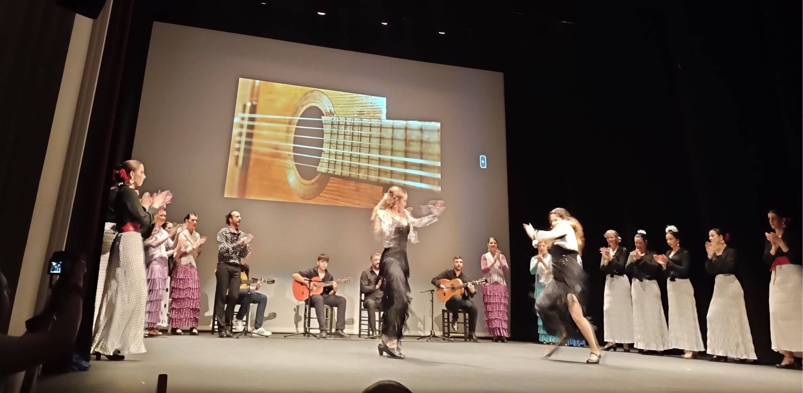 El evento, ‘Ven y te contamos’, ha combinado diversas disciplinas de baile protagonizadas por el flamenco y ha contado con un vibrante cuadro de bailaores, cantaores y guitarristas, acompañados de los/as profesores/as y los/as alumnos/as de la escuela.