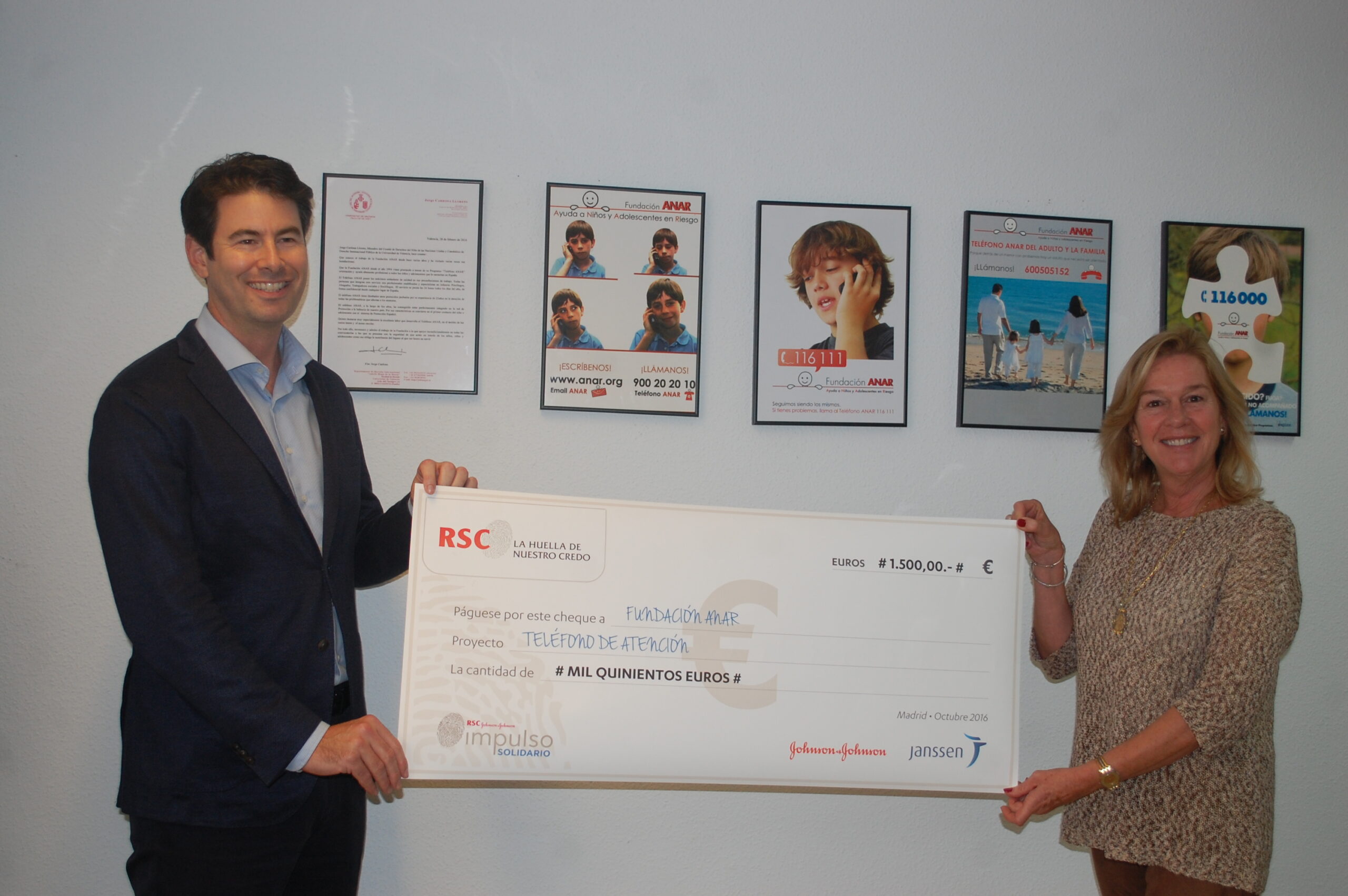El grupo Johnson & Johnson en España (www.jnj.com) se une a la Fundación ANAR con una aportación económica que contribuirá al mantenimiento del Teléfono ANAR de Ayuda a Niños y Adolescentes 900 20 20 10.