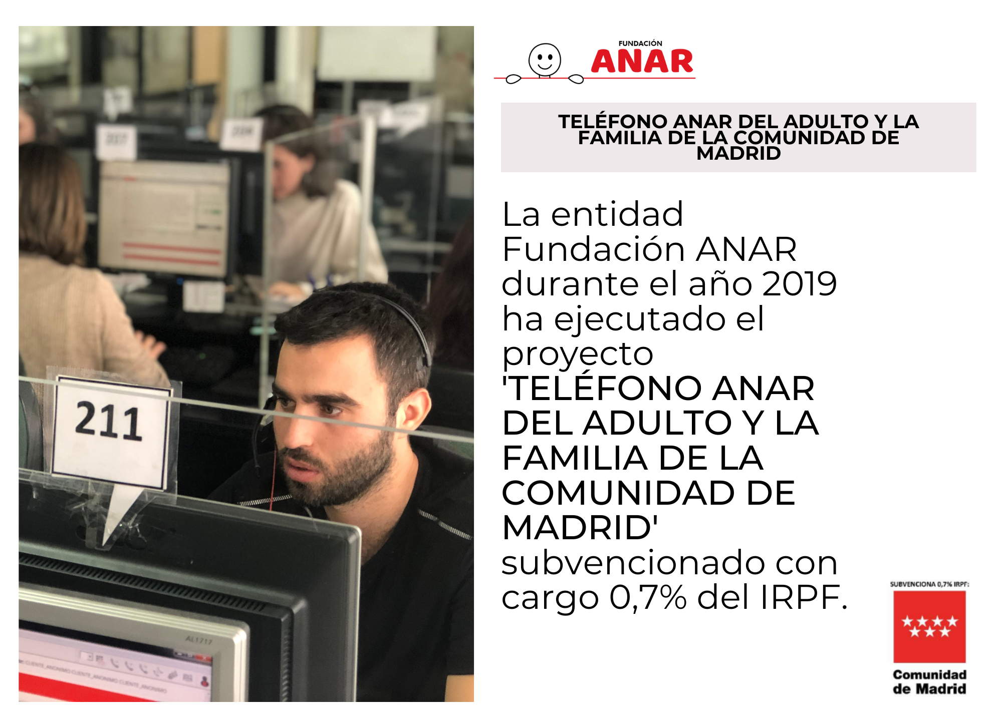 El Teléfono ANAR del Adulto y la Familia, subvencionado por la Comunidad de Madrid