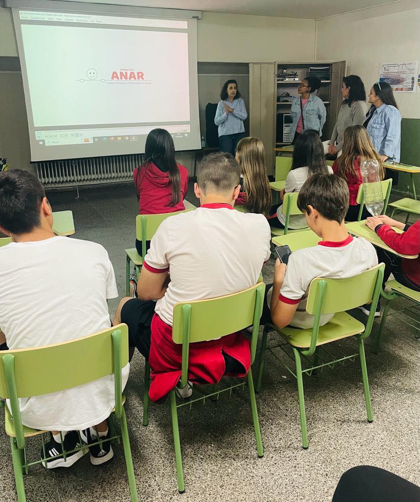 La delegada de ANAR en Castilla y León, Natalia Fernández, junto a la directora del centro, Nuria Martín, la responsable del departamento de convivencia, Amparo Pintos, y la orientadora, María Valverde, celebraron una comida con el grupo de chicos y chicas que, de manera voluntaria, han participado durante el curso y a los que queremos agradecer su facilitación e implicación por haber hecho posible la implementación del programa Buen Trato en el centro.