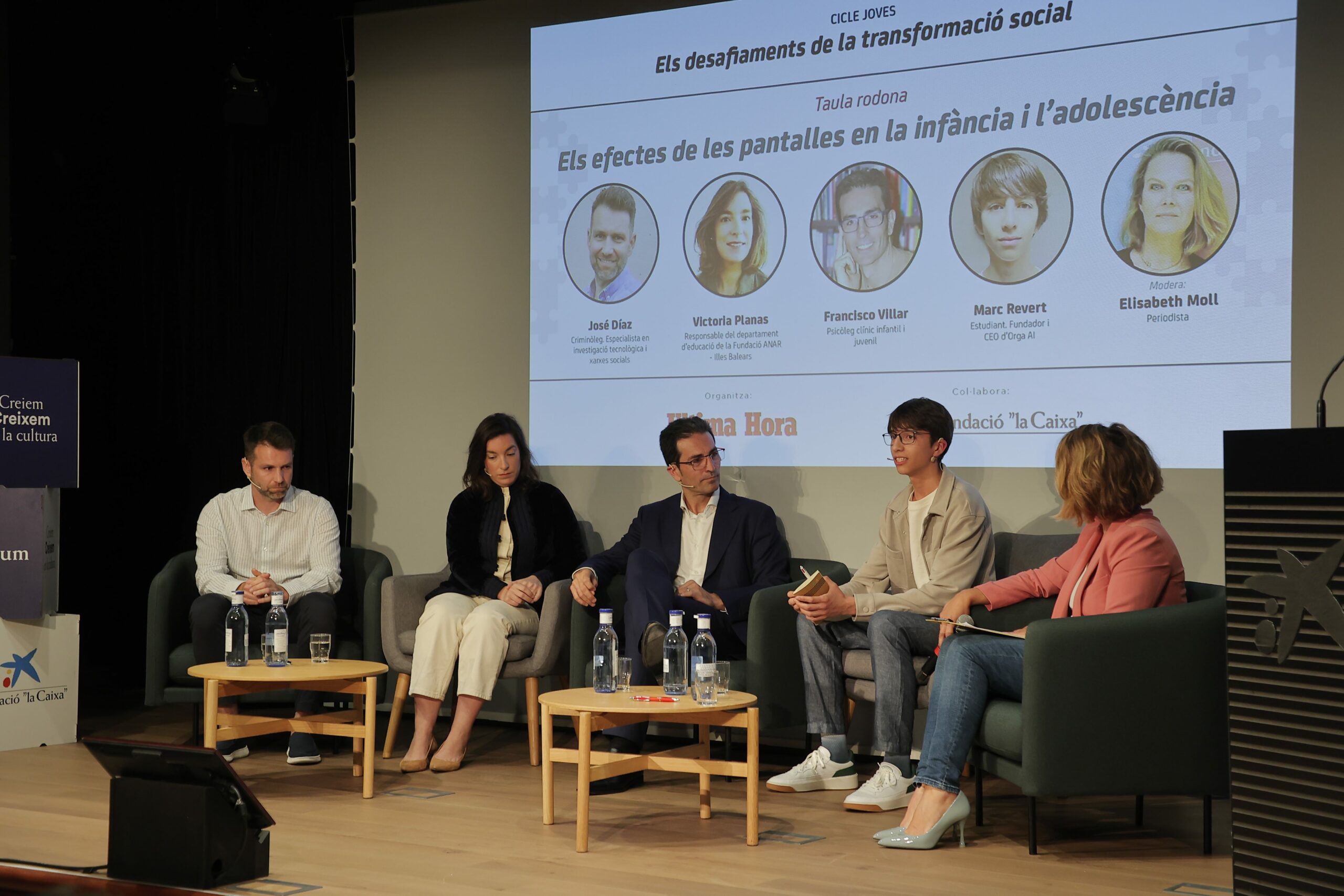 Seguidamente, ha tenido lugar una mesa redonda que ha versado sobre la necesidad de prohibir los móviles a los menores y de instruir en su utilización. En ella han participado Marc Revert, estudiante, fundador y CEO de ORGA AI; Victoria Planas, responsable del departamento de educación de la delegación en Baleares de la Fundación ANAR, y José Díaz, criminólogo especialista en investigación tecnológica.