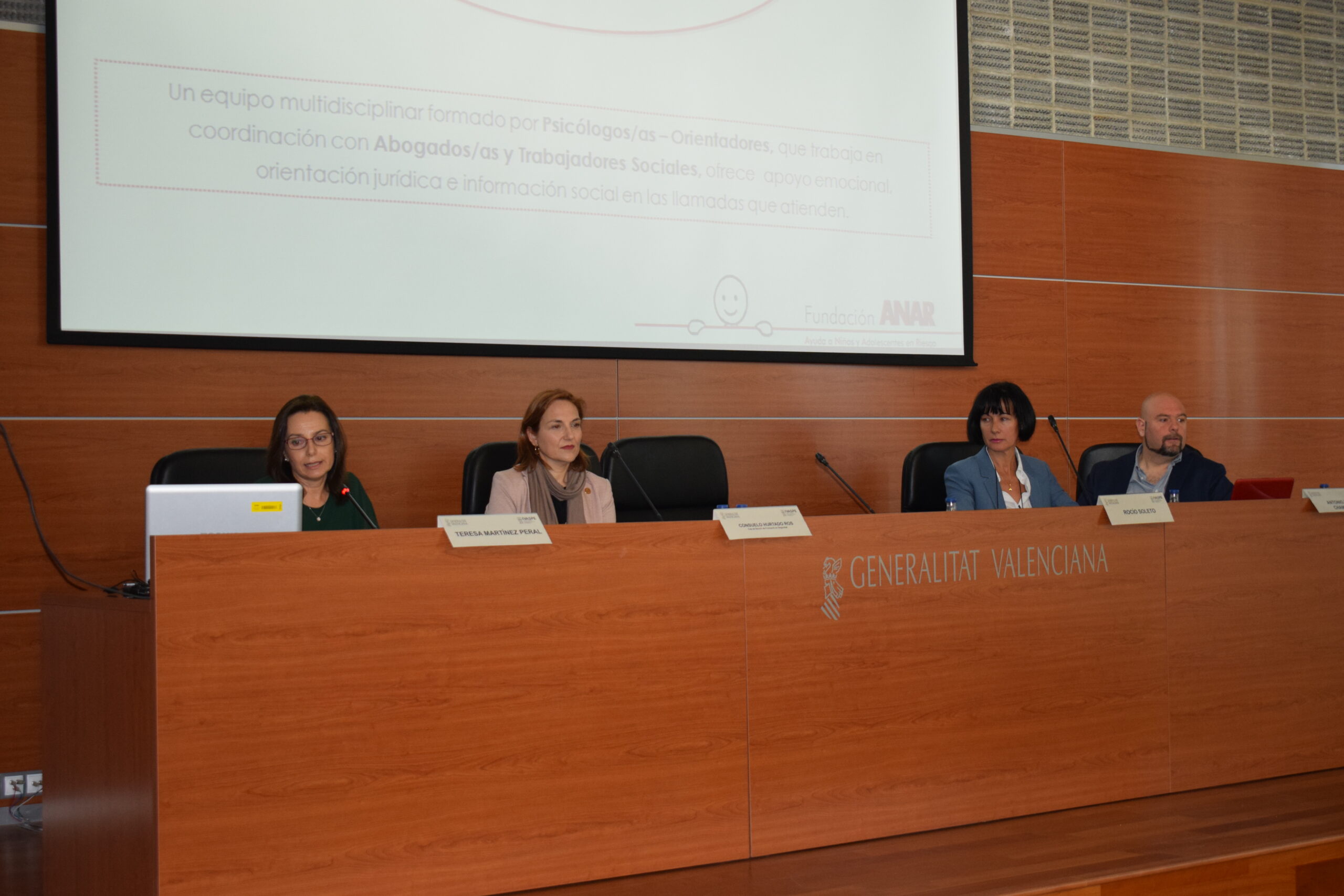 Teresa Martínez Peral, directora de la Delegación de la Fundación ANAR en la Comunidad Valenciana (en la imagen, primera por la izquierda), ha participado  en la Jornada sobre Menores y Violencia organizada por el Instituto Valenciano de Seguridad Pública y Emergencias (IVASPE).